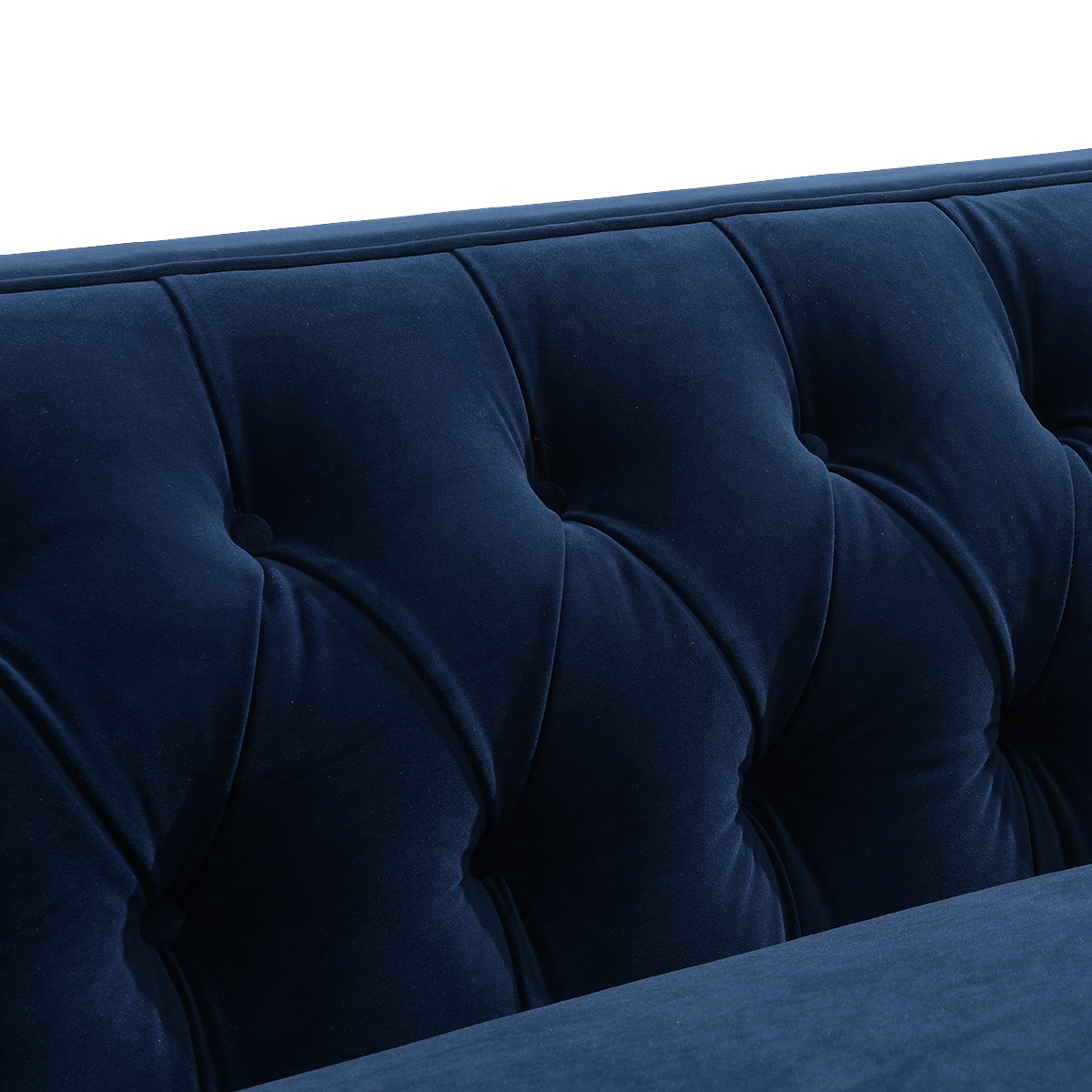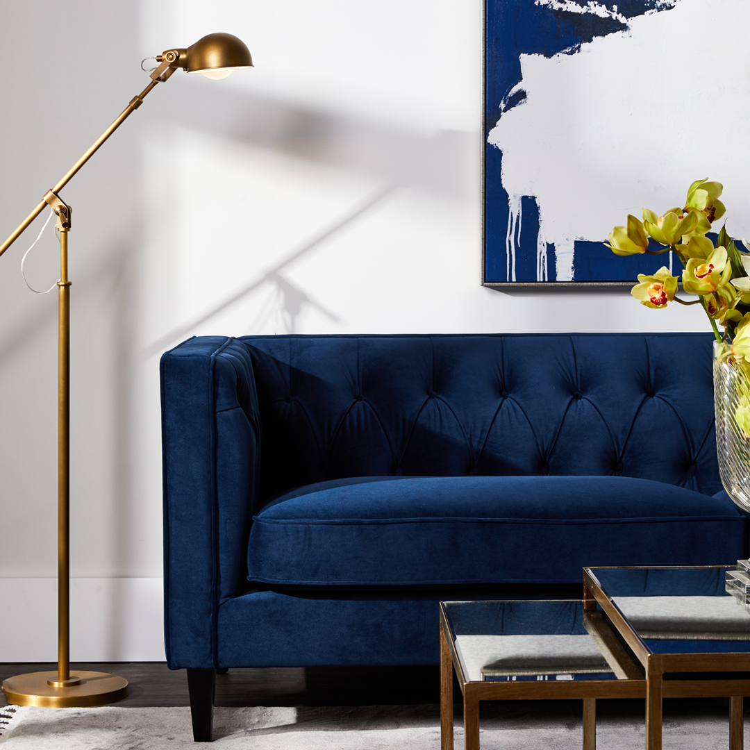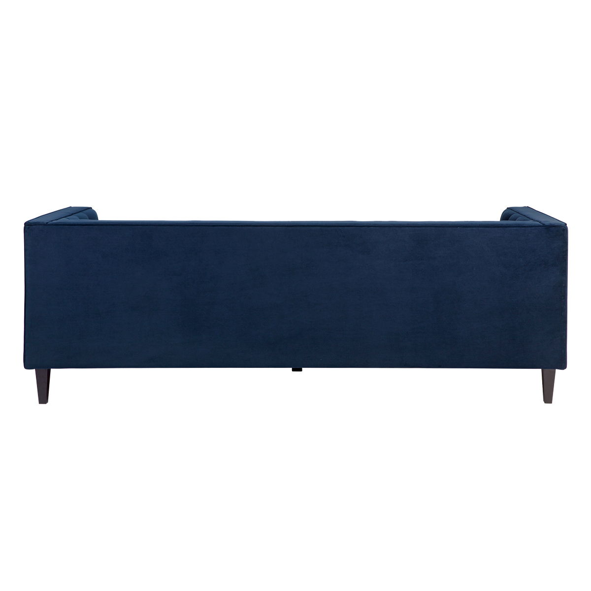 Exquisitely upholstered with a beautiful button-tufted backrest and detailed piping in a sumptuous navy velvet, the Anton 3 seater sofa flaunts divine design. Featuring a foam and dacron wrap cushion seat for maximum comfort, the clean modern lines and black timber legs work in charming contrast to the classically detailed velvet upholstery creating a timelessly sophisticated sofa that is the ultimate in classic contemporary design.