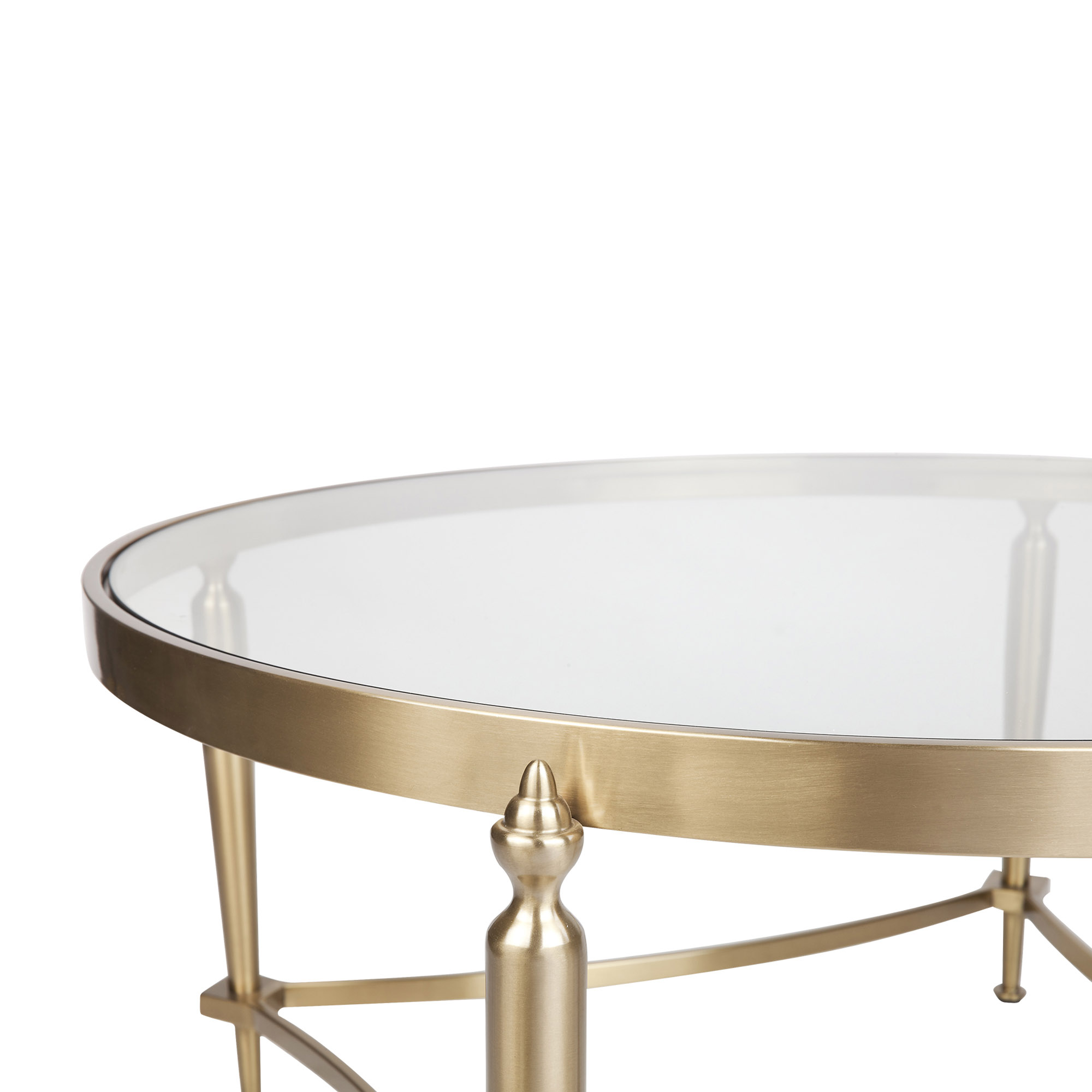 The Javier Table range adds a hint of classic character reinterpreted for modern living with strikingly handsome detailing, finished in a brushed gold stainless steel frame. Understatedly elegant, the rounded silhouette of the Javier coffee table sits perfectly as a supporting act to large furniture pieces in your living space. With a clear toughened glass tabletop, these pieces offer very practical living and leave a visually light footprint that will stand the test of time