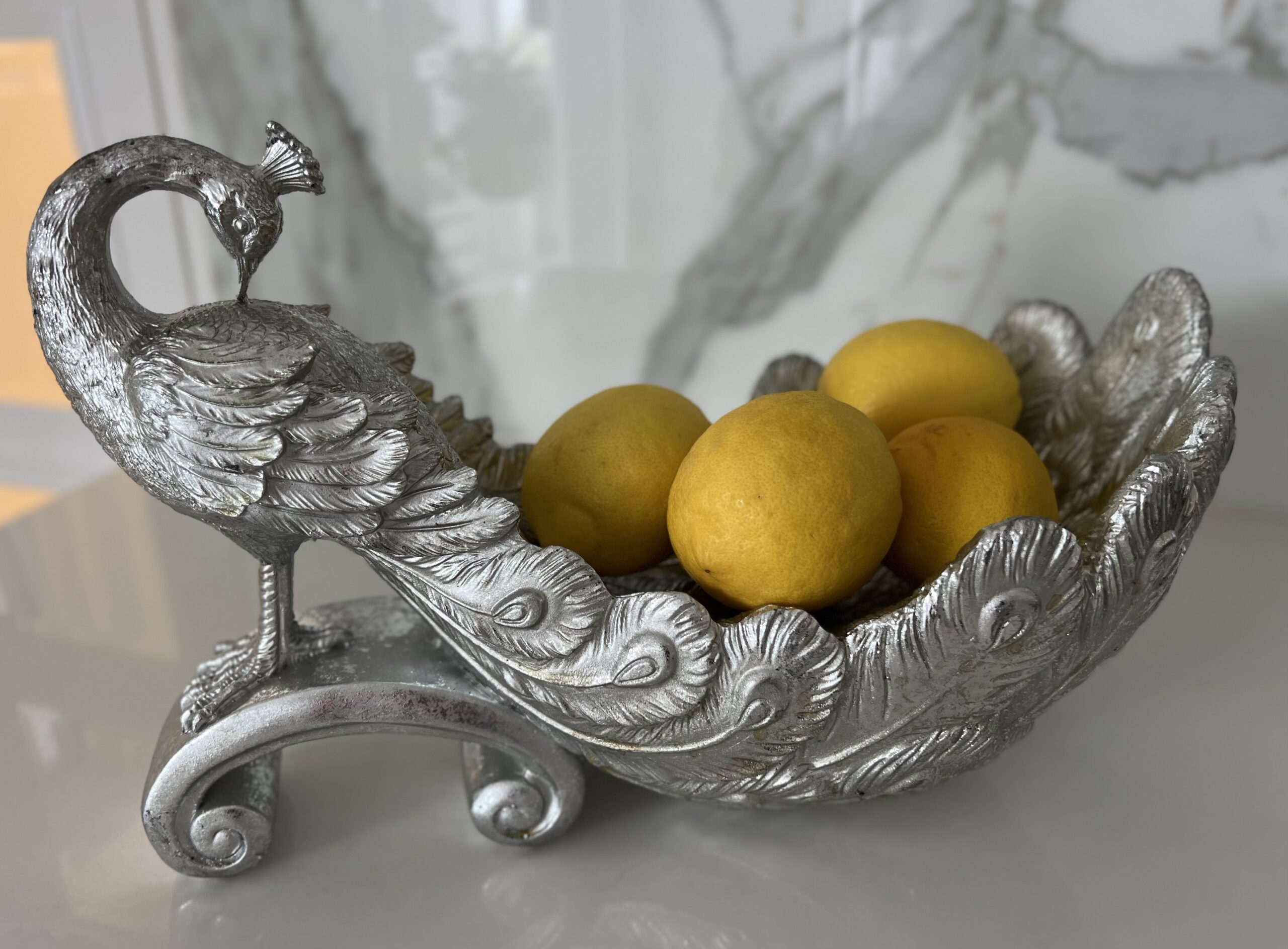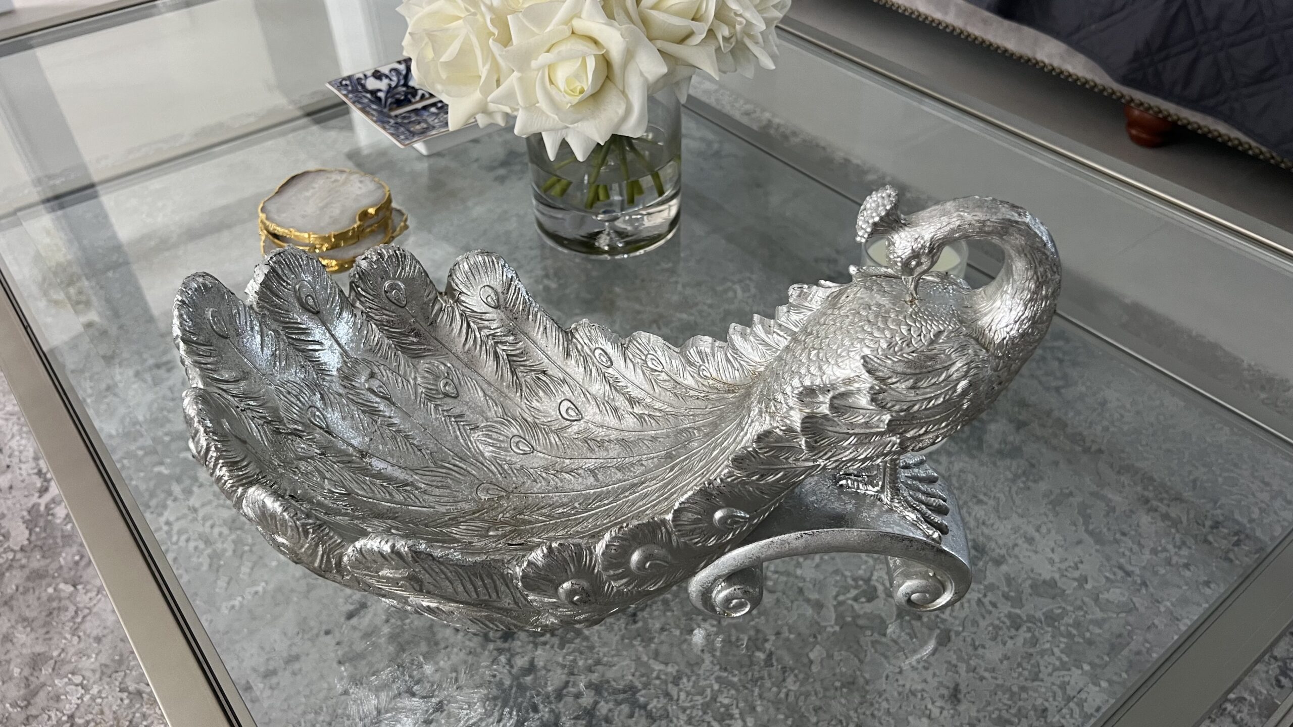 If your looking to add something a little bit extra to your home decor this beautifully designed silver peacock bowl will do just that.