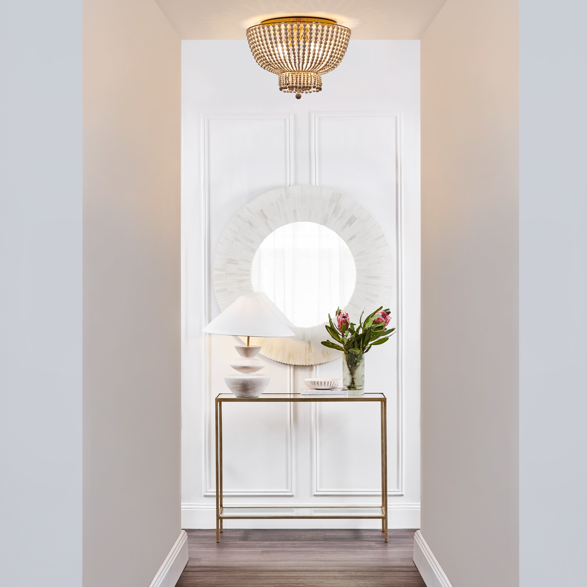Discover the captivating beauty of the Willow Lane Flush Mount, where cascading wooden beads create a thoughtfully designed fixture that seamlessly blends traditional aesthetics with a uniquely organic touch. Its antique gold finish iron framework adds a touch of modern classicism, resulting in a perfect balance of timeless elegance. This stunning flush mount is an ideal choice for coastal interiors.